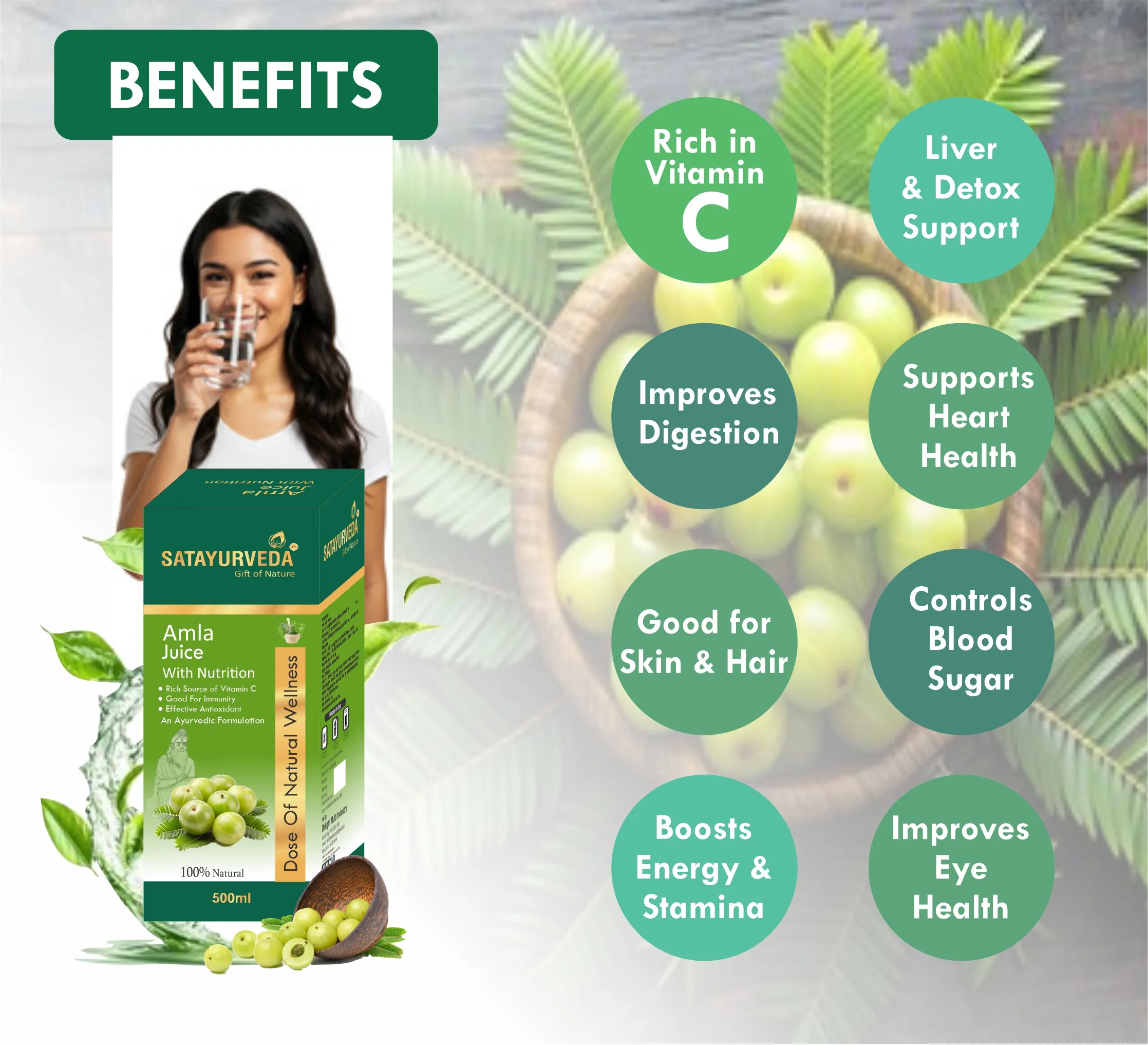 Amla Juice is a pure and natural health drink made from fresh Indian Gooseberry (Emblica officinalis) — one of the richest natural sources of Vitamin C. Known in Ayurveda as a powerful Rasayana (rejuvenator), Amla helps boost immunity, improve digestion, and promote overall vitality and wellness.Rich in antioxidants, Amla Juice helps detoxify the body, supports healthy liver function, and enhances skin and hair health. It strengthens the immune system, reduces acidity, and improves metabolism, keeping you active and energetic throughout the day. Regular use also helps maintain healthy vision and youthful skin while promoting natural hair growth.