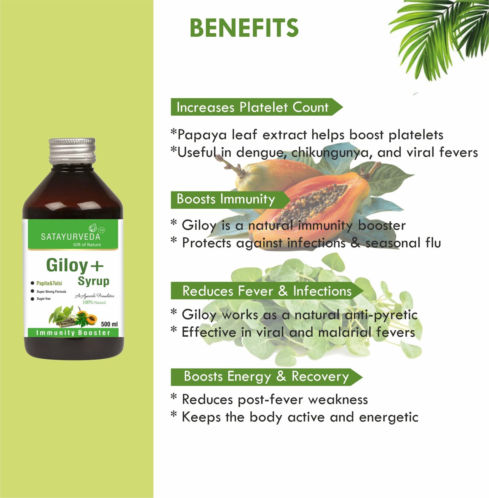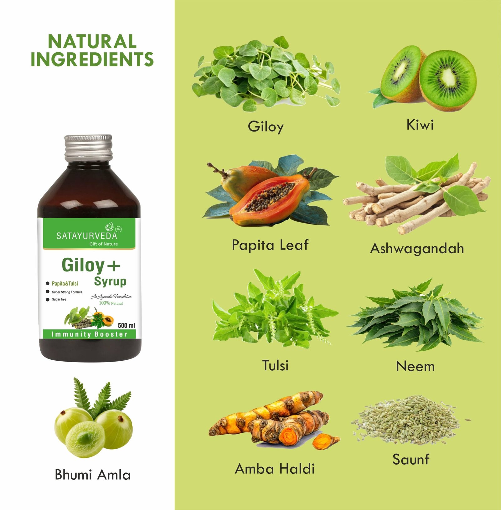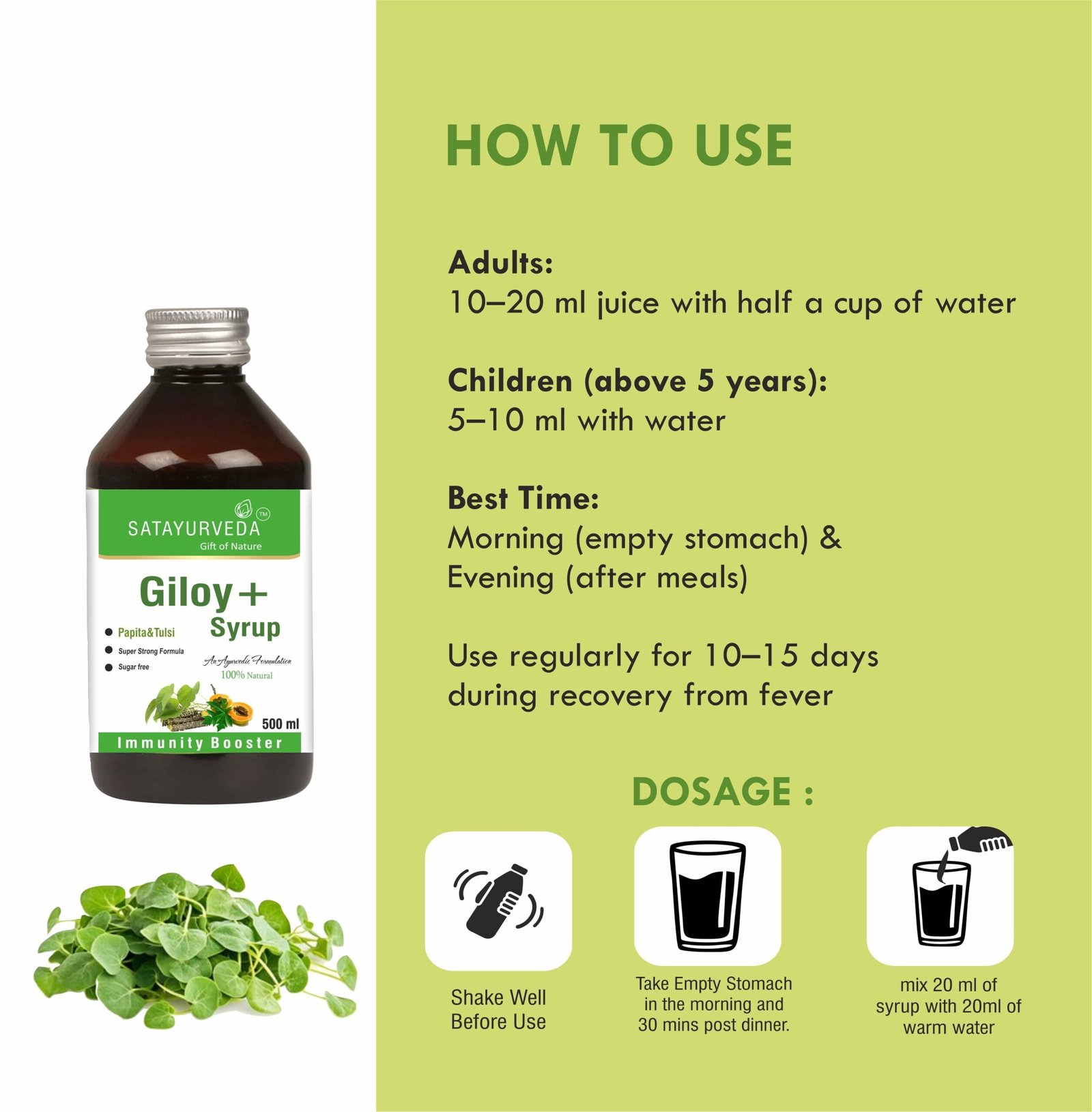 Giloy + Syrup is a natural herbal tonic made from pure Giloy (Tinospora cordifolia), known in Ayurveda as Amrita — the “root of immortality.” It helps strengthen the immune system, purify the blood, and protect the body from infections.This syrup supports liver health, aids digestion, reduces inflammation, and helps relieve fatigue and weakness. Regular use helps enhance overall strength, stamina, and vitality.