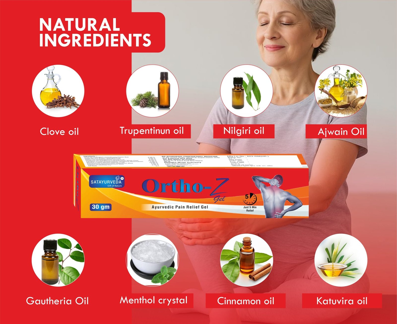 Ortho-Z Gel is a fast-acting herbal formula designed to provide quick and long-lasting relief from muscle pain, joint stiffness, backache, sprains, and body aches. It penetrates deep into the affected area, reducing inflammation and improving blood circulation to relieve pain naturally.Enriched with natural ingredients known for their anti-inflammatory and soothing properties, this cream helps relax muscles, reduce swelling, and restore mobility — leaving you feeling comfortable and refreshed.